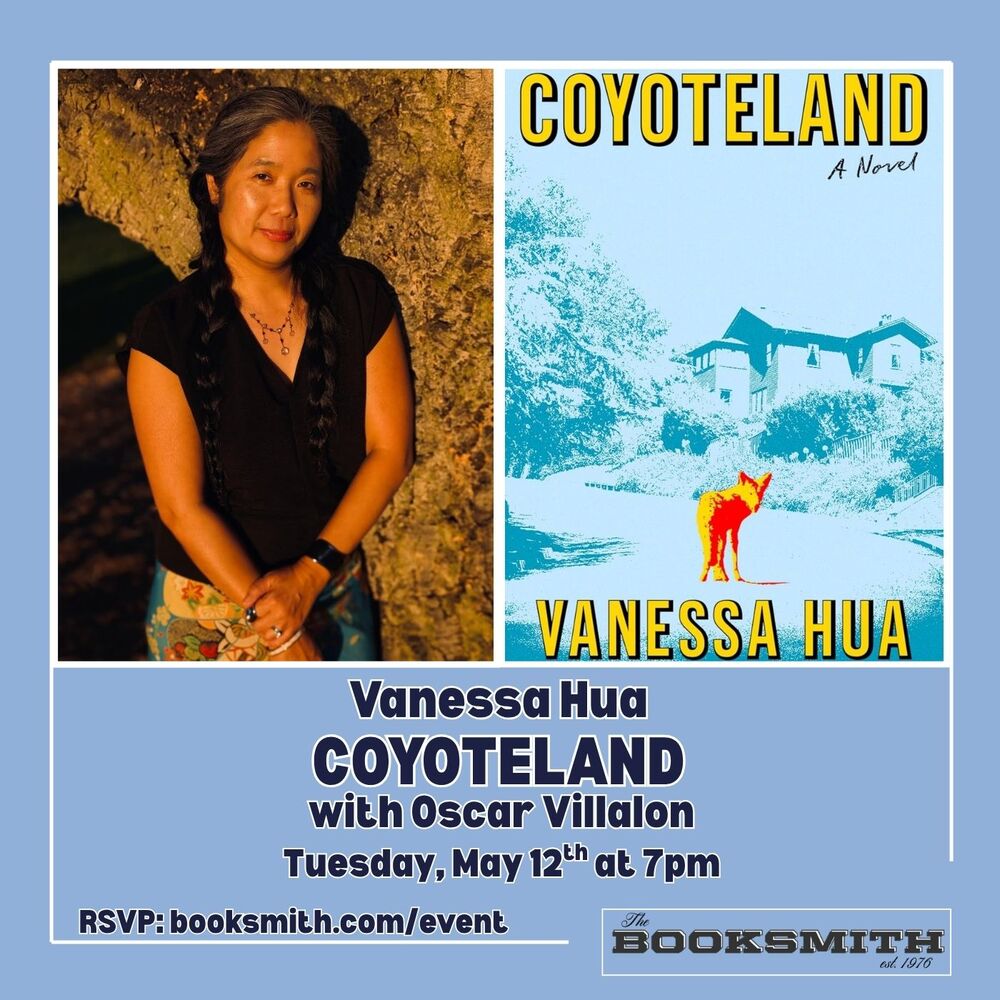 Join us on May 12th as we welcome Vanessa Hua back to the shop for the release of Coyoteland. She will be joined in conversation by Oscar Villalon. Save the date! RSVP is not required, but appreciated. Seats are limited and can be guaranteed with the purchase of a book or a $3 sliding scale donation to our program.