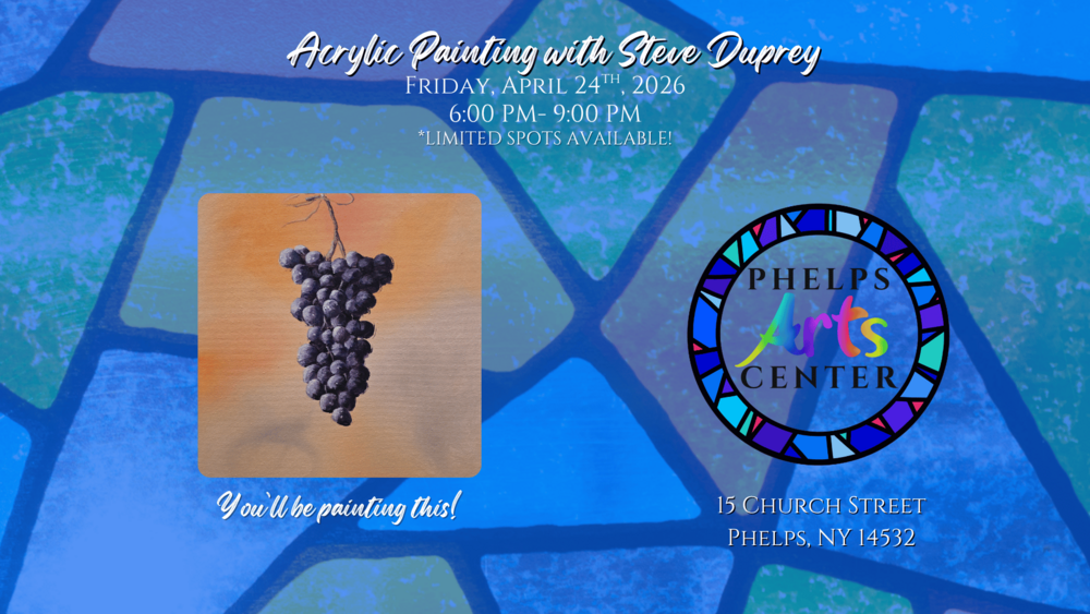 Join us for an inspiring evening of creativity at the Phelps Arts Center during Acrylic Saturday with Steve Duprey, a guided acrylic painting workshop designed for artists of all experience levels.