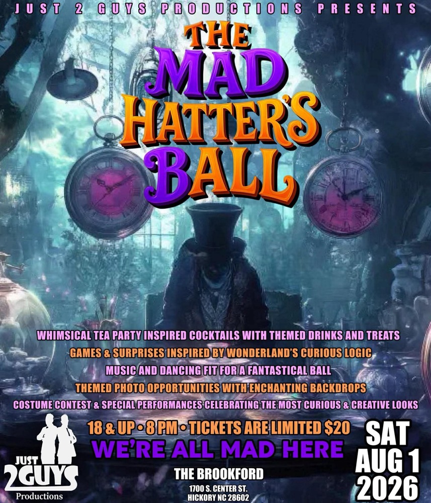 Step into a world of whimsy and wonder at The Mad Hatter’s Ball, a ALL INCLUSIVE event presented by Just 2 Guys Productions! Join us for an unforgettable evening where curiosity rules and imagination runs wild.